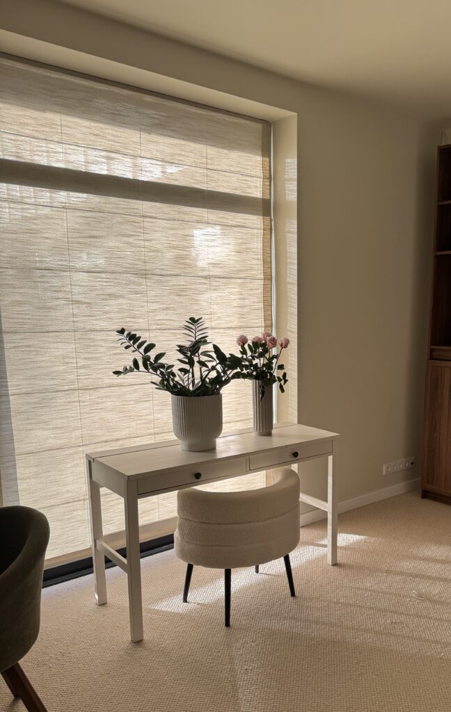 Roomakardin annab ruumile palju hubasust ja tänu laiale kangavalikule saab luua omapärase ja ruumi interjööriga ideaalselt sobiva tulemuse, säilitades samal ajal funktsionaalsuse. Roomakardina abil saab valgust kergelt hajutada, tuba täielikult pimendada ning peale sele aitab roomakardin ka ruumi temperatuuri kontrolli all hoida.